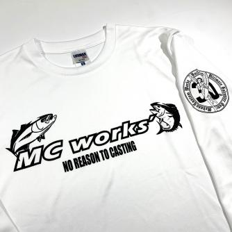 抗菌防臭ポリジン加工、UV カットを施した着心地の良い4.4ozドライロングTが新入荷致しました!!フロントにヒラマサとマグロをあしらったMC worksロゴ、左袖に30thエンジェルロゴが入っています。これからの季節、出番が増えるロンTです。