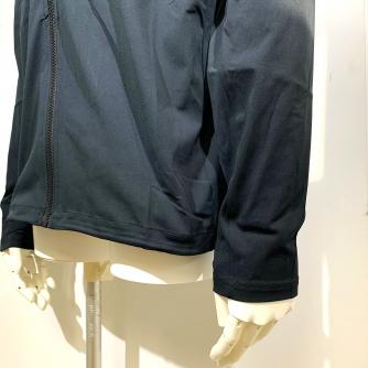 ジップはフロントチェストに左右対称に一対のみのシンプルなディテール。ウエストジップがない分、胴周りがタイトに見えてスマートなのが◎