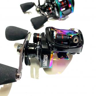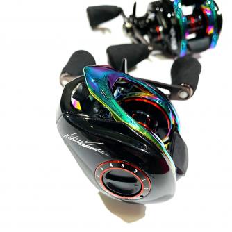 オリジナルボディカラーは「AURORA(オーロラ)」となっており、ハンドルは専用で作られた88mmハンドルに専用大型EVAノブを搭載。メインシャフトにこちらも専用のハンドルホールドシステム。またピニオンギアとマスターギアも専用設計されたものが搭載されております。