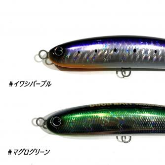 そこで200,250kg以上は当たり前、300,400kgの最大モンスターと本気で戦える補強を施し、モンスターマグロ専用設計として新たに金型を作り直し、ステンレス板をレーザーカットした専用プレートワイヤーを実装。またPE12号で少しでも飛距離を稼ぐべく、GT-REX#5/0を装着した状態でギリギリ浮く浮力を確保しつつ、MAXもウェイトも増量の完全モンスター仕様設計!!