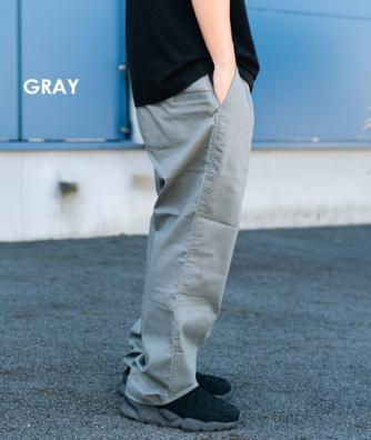 程よい厚さのストレッチの効いたコットン生地を使用し、ゆとりのあるワイドシルエットに仕上げました。